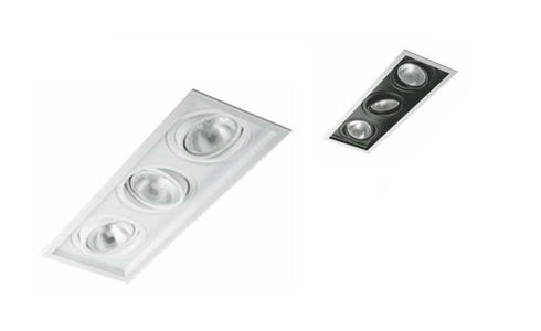 Módulo de luminárias de embutir decorativas com pintura eletrostática nas cores branca ou preta.