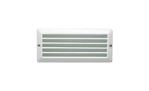 Arandela de embutir em alumínio fundido com grade com pintura eletrostática nas cores brancas e pretas. Utilizada em escadas e paredes para iluminação de pisos.